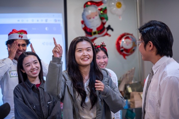 派對現場,美食與輕鬆的交流成了最好的調味劑,讓平時忙碌的大家能慢下腳步,分享生活點滴。在「比手畫腳」的默契考驗中,同學們展現了平時難得一見的創意與幽默感,動作一個比一個誇張,現場笑聲不斷,歡樂指數直線上升。🙌隨後的交換禮物時刻更是驚喜連連,每一份禮物都承載著滿滿的心意與祝福。🎁老師也到場一起參與,與同學們輕鬆互動,為這場聖誕派對增添了一份溫暖與親切。