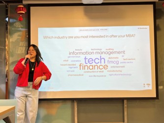 活動中,MBA 執行長也特別到場致詞,與同學們分享與勉勵。教授們也一同參與活動,與同學們輕鬆互動,讓整個午間時光更添溫暖與活力。接著由兩位在校生分享 MBA 的日常生活,從課程學習、校園活動到同學之間的合作經驗,讓大家更了解 MBA 的學習與生活樣貌。分享過程中不時引起共鳴,也讓現場氣氛更加輕鬆熱絡。隨後登場的破冰遊戲讓大家迅速熟悉彼此,同學們在互動中拉近距離,笑聲不斷。短短一個午休時間,卻充滿交流與歡樂。活動最後,學生會也向同學們介紹了本學期即將舉辦的各項活動,邀請大家踴躍參與。